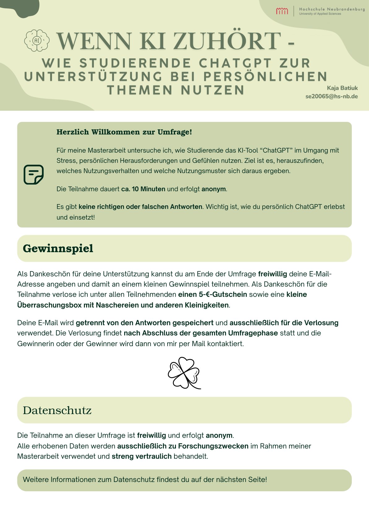 Umfrageoptionen Zwischengespeicherte Umfrage laden Später fortfahren Sie haben 0% dieser Umfrage fertiggestellt. Standard Achtung: Javascript ist in Ihrem Browser für diese Webseite deaktiviert. Es kann sein, dass Sie daher die Umfrage nicht abschließen werden können. Bitte überprüfen Sie Ihre Browser-Einstellungen. Weiter Zwischengespeicherte Umfrage laden Später fortfahren Umfrage verlassen und Antworten löschen Umfrage verlassen und Antworten löschen Bitte bestätigen Sie, dass Sie Ihre Antwort löschen möchten.